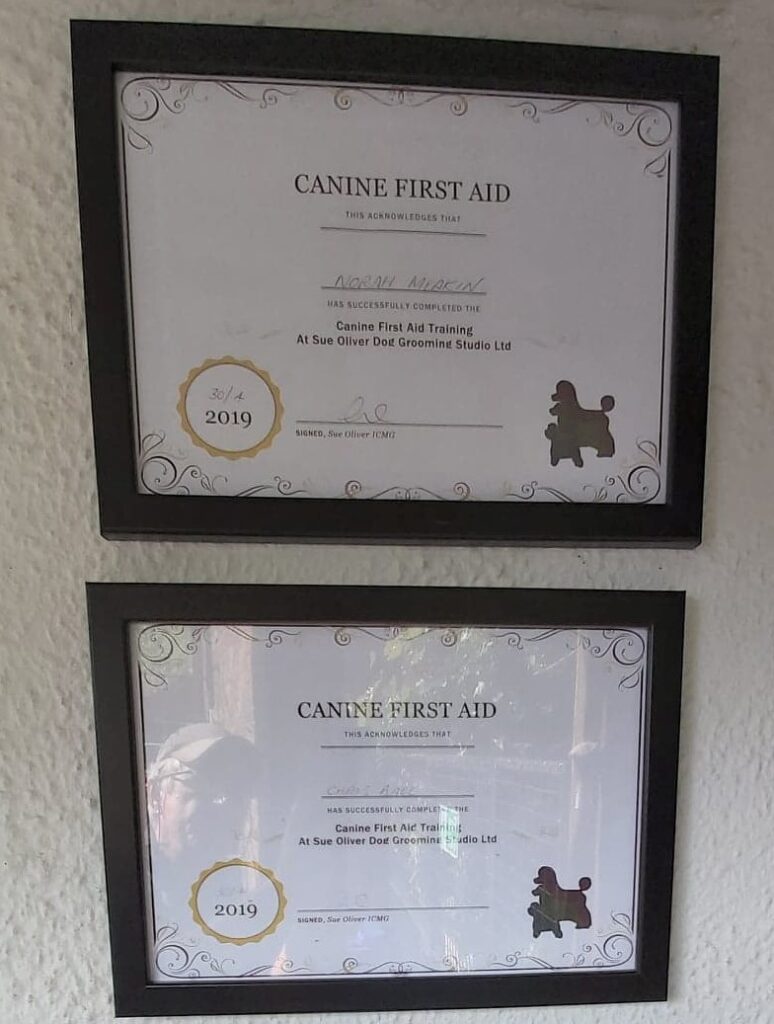 Canine First Aid Certicicates – Chris Ball and Norah Meakin.